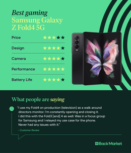 Samsung’s Galaxy Z Fold phones aim to combine new innovations with old-school 00s aesthetics. This novel idea seemed risky early on, but the Fold line has earned its keep as a worthwhile investment for luxury phone enthusiasts. Much emphasis should be placed on that “luxury” part, as these phones are quite pricey, and their features can overwhelm certain users. The Galaxy Z Fold4 (professionally refurbished prices starting from €477) might be the best Samsung device for anyone looking for a phone that can also double as a tablet otherwise known as a “phablet”).