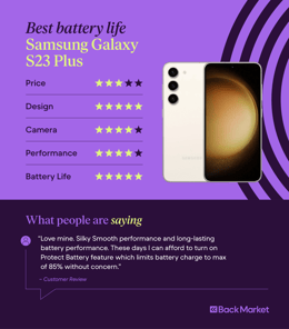 The best Samsung phone isn’t always the priciest model or the device with the fanciest features. Functionality goes a very long way — you may become fond of a phone that simply feels good to use even without so many flourishes. That’s often the case with the Samsung Galaxy S23 Plus (professionally refurbished prices starting from €288).