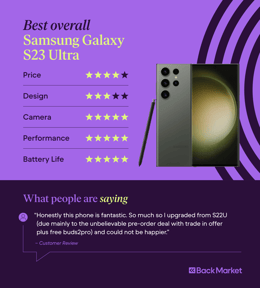 Even the base models of Samsung’s line of Galaxy phones tend to be crowd-pleasers each year. The Samsung Galaxy S23 Ultra (professionally refurbished prices starting from €399), however, is the best model of Samsung’s latest and greatest Galaxy smartphones, boasting the best camera of any Galaxy phone on the market and easily rivalling competitors like Apple or Google.
